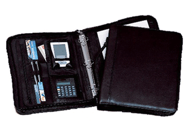 Features : Made of top-grain Napa leather. 1" ring binder with a zippered closure, gusseted file pocket and two additional pockets with pockets with PDA and cell phone. Three pen loops. Reversible pad section. Holds 8 1/2" x 11" and A4 pads.